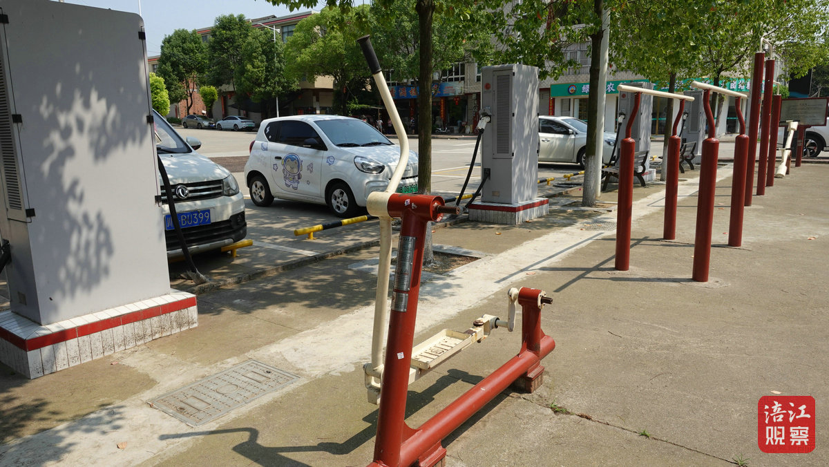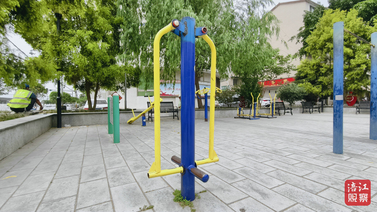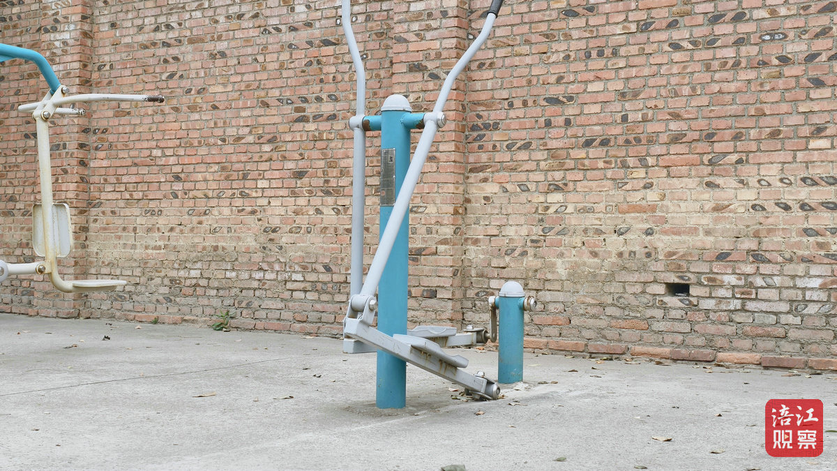 安州區(qū)塔水鎮(zhèn)清泉社區(qū)便民服務(wù)廣場(chǎng)的健身路徑損壞更為嚴(yán)重:10件器材中8件“癱瘓”,破損率達(dá)80%。漫步機(jī)吊臂、踏板缺失大半,鐵柱傾斜,三位扭腰器轉(zhuǎn)盤無(wú)蹤,所有支架大面積銹蝕。