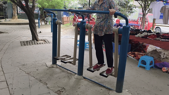 “早上一群老年人來(lái)鍛煉,下午五點(diǎn)到八九點(diǎn)人也多,器材超期幾年了,可能會(huì)把人絆倒,或者用的時(shí)候突然鋼架斷了。”一位市民坦言。