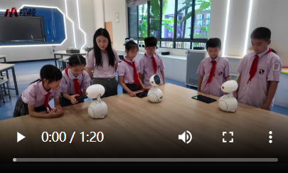 在AI機器人社團,孩子們通過編程來操控機器人的表情、運動、技能等,看著可愛的小機器人通過指令來回做著各種可愛的動作,孩子們也露出了興奮的神情。