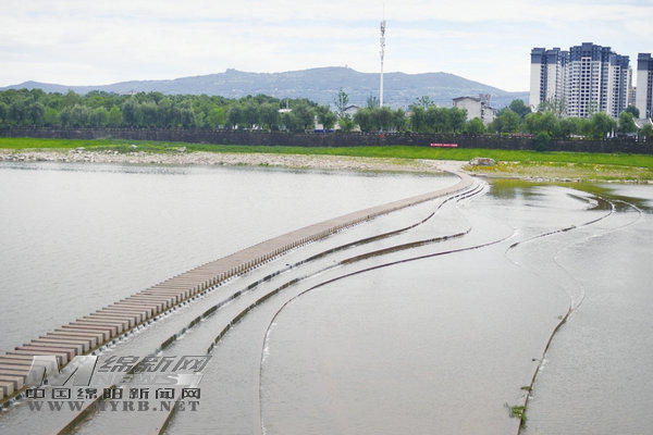 龍門堰位于梓潼城區(qū)河段江心洲魚嘴上游120米處。新建的低堰打破了河道水面單調的線性流動狀態(tài),塑造出層次豐富的水域景觀。沿岸精心打造的親水平臺、蜿蜒的景觀步道,增強了城市的休閑娛樂功能,提升了城區(qū)的景觀品質。
