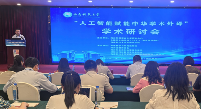 7月4日-6日,由四川外國語言文學(xué)研究中心、中國外文局開棣(CATTI)教育測評中心和西南科技大學(xué)外國語學(xué)院共同主辦,四川省翻譯協(xié)會、外語教學(xué)與研究出版社、四川歷史文化普及基地、西南科技大學(xué)學(xué)報(哲社版)等機(jī)構(gòu)協(xié)辦的“人工智能賦能中華學(xué)術(shù)外譯”學(xué)術(shù)研討會于在中國科技城·綿陽順利舉行。來自復(fù)旦大學(xué)、西南科技大學(xué)、浙江理工大學(xué)、北京師范大學(xué)、南京郵電大學(xué)和上海理工大學(xué)等十余所省內(nèi)外高校以及外語教學(xué)與研究出版社、復(fù)旦大學(xué)出版社、浙江大學(xué)出版社、中華書局和安徽科學(xué)技術(shù)出版社等國內(nèi)一流學(xué)術(shù)出版機(jī)構(gòu)的80余名專家學(xué)者和青年研究人員齊聚一堂,圍繞“人工智能時代中華學(xué)術(shù)外譯的新挑戰(zhàn)、新機(jī)遇和新發(fā)展”這一論壇主題,深入研討了技術(shù)賦能中華學(xué)術(shù)外譯的實現(xiàn)路徑、中華學(xué)術(shù)外譯項目的培育和申報實務(wù)等話題。