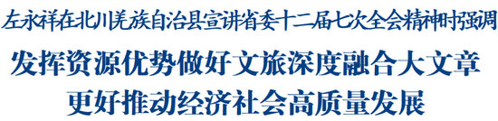 學(xué)習(xí)宣傳貫徹省委十二屆七次全會(huì)精神,是全市上下當(dāng)前和今后一個(gè)時(shí)期的重要政治任務(wù)。左永祥聽取北川羌族自治縣文旅高質(zhì)量發(fā)展及規(guī)劃布局情況介紹,并宣講省委全會(huì)精神。他說,推進(jìn)文旅深度融合發(fā)展是推動(dòng)高質(zhì)量發(fā)展的必然要求,是當(dāng)前形勢(shì)下擴(kuò)內(nèi)需、調(diào)結(jié)構(gòu)、惠民生、促開放的重要舉措。這次省委全會(huì)對(duì)推進(jìn)文旅深度融合發(fā)展作出系統(tǒng)謀劃和整體部署,事關(guān)全局、意義重大。北川文旅資源豐富,生態(tài)環(huán)境優(yōu)美,要認(rèn)真學(xué)習(xí)貫徹全會(huì)精神,搶抓機(jī)遇、用好政策,推動(dòng)省委部署要求細(xì)化實(shí)化具體化,積極探索具有特色的文旅融合發(fā)展新路徑,創(chuàng)新文旅消費(fèi)多元供給,做靚特色文旅名片,加快把文旅資源優(yōu)勢(shì)轉(zhuǎn)化為發(fā)展新動(dòng)能。要積極融入服務(wù)全市文旅產(chǎn)業(yè)發(fā)展布局,以北川羌城5A級(jí)旅游景區(qū)為依托,建立健全市場(chǎng)化運(yùn)營機(jī)制,精心做好“大禹”“大愛”文化、“大熊貓”IP等資源整合,加大宣傳力度,不斷提升北川文旅的知名度、美譽(yù)度和影響力。學(xué)習(xí)貫徹省委全會(huì)精神,要和做好當(dāng)前工作結(jié)合起來,要立足實(shí)際、因地制宜,培育壯大低空經(jīng)濟(jì)等特色優(yōu)勢(shì)產(chǎn)業(yè),抓實(shí)抓好鄉(xiāng)村全面振興,統(tǒng)籌做好抓項(xiàng)目、擴(kuò)投資、促消費(fèi)等重點(diǎn)工作,走好民族地區(qū)高質(zhì)量發(fā)展路子,努力讓群眾生活更富裕更美好。