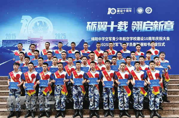 “張浩文”“到!”“王磊”“到!”“馮鑫”“到!”……7月11日上午,綿陽(yáng)中學(xué)子云大禮堂內(nèi)傳來(lái)一聲聲鏗鏘有力的答到聲。當(dāng)天,綿陽(yáng)中學(xué)空軍青少年航空學(xué)校建設(shè)10周年慶祝大會(huì)暨2025年空軍飛行學(xué)員錄取通知書(shū)頒發(fā)儀式舉行。西部戰(zhàn)區(qū)空軍政治工作部,四川省教育廳,綿陽(yáng)市委、市政府等軍地領(lǐng)導(dǎo)出席活動(dòng),共同見(jiàn)證青航校學(xué)子圓夢(mèng)藍(lán)天的美好時(shí)刻、共同分享軍地“聯(lián)姻”培育飛行英才的收獲喜悅、共同憧憬青春能量助推強(qiáng)軍目標(biāo)的美好愿景。