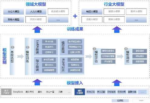 “同舟”平臺(tái)自主研發(fā)三級(jí)模型適配體系,創(chuàng)新實(shí)現(xiàn)從通用大模型向行業(yè)專屬模型的精準(zhǔn)躍遷,支持企業(yè)基于私有數(shù)據(jù)進(jìn)行專業(yè)化、適配業(yè)務(wù)需求的專屬模型構(gòu)建,有效提升模型在特定業(yè)務(wù)場景下的推理準(zhǔn)確性與響應(yīng)效率。在多輪實(shí)測中,行業(yè)模型在知識(shí)命中率、上下文理解能力、任務(wù)執(zhí)行精度等關(guān)鍵指標(biāo)上,相較通用模型平均提升30%以上。