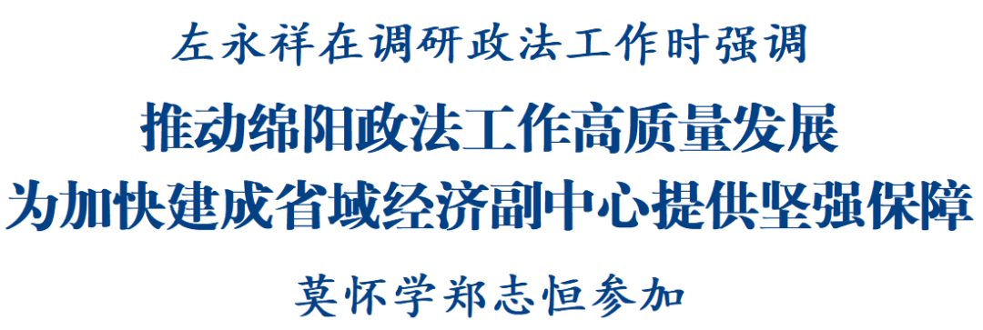 綿陽新聞網(wǎng)訊 7月15日,省委常委、副省長、市委書記左永祥前往涪城區(qū)、高新區(qū)(科技城直管區(qū))調(diào)研政法工作。他強調(diào),要深入學習貫徹習近平法治思想和習近平總書記關(guān)于政法工作的重要指示精神,聚焦服務中心大局,以促進社會公平正義、增進人民福祉為出發(fā)點和落腳點,忠誠履職、擔當作為,推動綿陽政法工作高質(zhì)量發(fā)展,為加快建成省域經(jīng)濟副中心提供堅強保障。