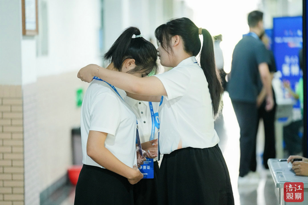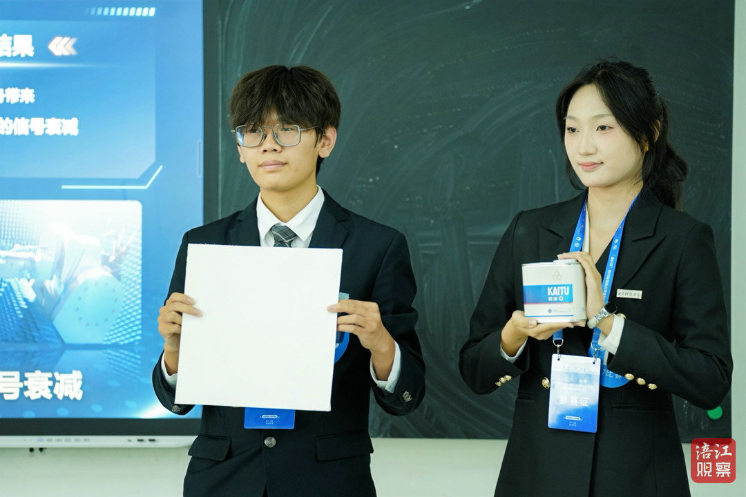 上午9時(shí),青春的活力與創(chuàng)新的激情在校園里涌動(dòng)。一間間答辯室內(nèi),參賽選手們狀態(tài)各異:有的腳步輕快、神采奕奕地步入賽場;有的在場外合影留念,以緩解緊張情緒;還有的正抓緊最后時(shí)間演練答辯演講稿。