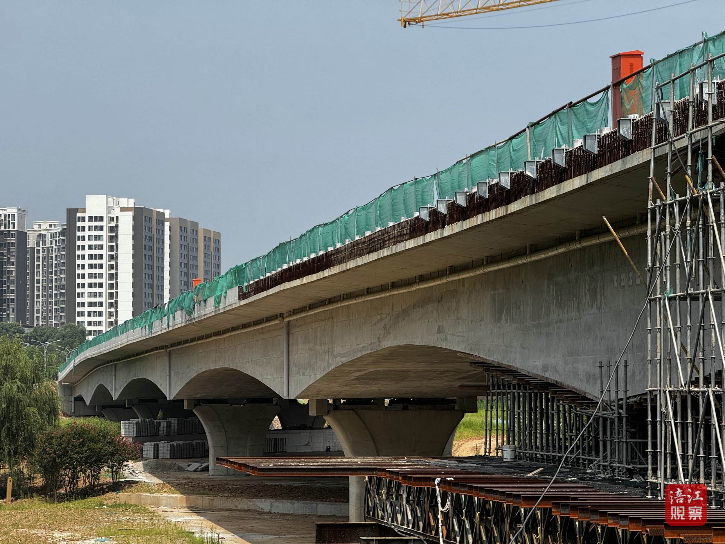 “當(dāng)前我們正在進(jìn)行最后一跨樁基以及橋梁梁體的施工,接下來會(huì)進(jìn)行瀝青路面的鋪設(shè),以及交安設(shè)施、路燈照明等施工,預(yù)計(jì)今年底可建成通車。”左敏說。