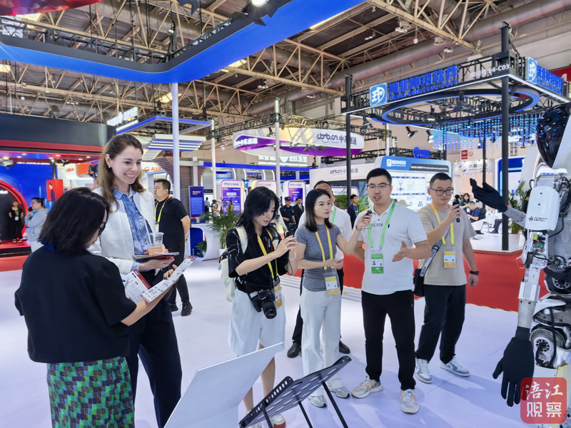 ?天鏈人形機(jī)器人“T1pro”、它人M2pro商用清潔機(jī)器人等動(dòng)態(tài)演繹產(chǎn)品的機(jī)器人特色產(chǎn)業(yè)展區(qū)圍滿了參觀者;