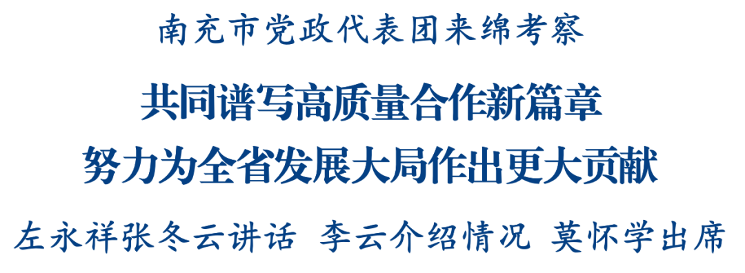 張冬云在講話中代表南充市委、市政府對(duì)代表團(tuán)一行在綿陽(yáng)受到的周密安排表示感謝,對(duì)綿陽(yáng)欣欣向榮的發(fā)展態(tài)勢(shì)表示祝賀。他說,綿陽(yáng)與南充地域相鄰、人文相親,有著共同的生活習(xí)俗和文化基礎(chǔ)。如今,都肩負(fù)著建成省域經(jīng)濟(jì)副中心的重任,兩地交流合作更加緊密深入。綿陽(yáng)作為中國(guó)唯一科技城,推動(dòng)科技創(chuàng)新的專注定力、推進(jìn)重點(diǎn)產(chǎn)業(yè)建圈強(qiáng)鏈的寶貴經(jīng)驗(yàn)、擴(kuò)大對(duì)外開放的有力舉措以及干部真抓實(shí)干奮進(jìn)有為的優(yōu)良作風(fēng),值得南充認(rèn)真學(xué)習(xí)借鑒。他指出,南充是國(guó)家規(guī)劃定位的成渝地區(qū)北部中心城市和省委、省政府培育的川東北省域經(jīng)濟(jì)副中心,是區(qū)域交通樞紐、紅色革命老區(qū)、宜居宜游城市。南充堅(jiān)定貫徹黨中央和省委決策部署,去年以來謀劃實(shí)施“1558”工作思路,奮力推動(dòng)經(jīng)濟(jì)社會(huì)高質(zhì)量發(fā)展。今年以來,把“全力打贏經(jīng)濟(jì)發(fā)展翻身仗”作為今明兩年的工作總抓手,堅(jiān)持既立足當(dāng)前、全力以赴抓出立竿見影的短期增長(zhǎng)成效,又著眼長(zhǎng)遠(yuǎn)、久久為功奠定夯基壘臺(tái)的長(zhǎng)期發(fā)展支撐,推動(dòng)經(jīng)濟(jì)加快向好、跨越升位。希望兩市健全多層次合作機(jī)制,在交通物流、產(chǎn)業(yè)發(fā)展、科技創(chuàng)新和成果轉(zhuǎn)化、生態(tài)環(huán)境、公共服務(wù)上加強(qiáng)合作,讓兩地人民能夠享有更多合作發(fā)展紅利。
