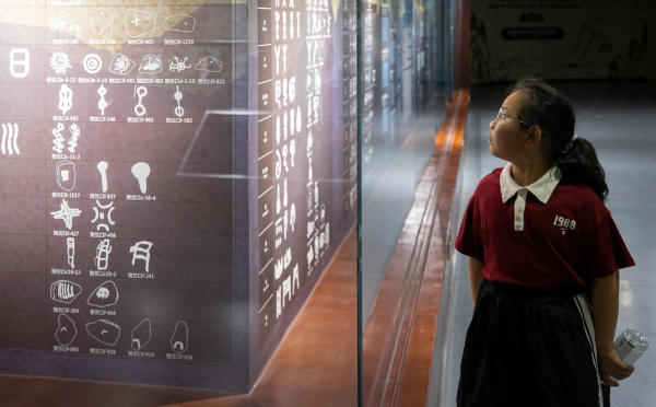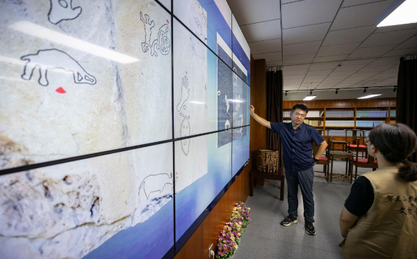 7月23日,工作人員在銀川世界巖畫館研究室研究賀蘭山巖畫數(shù)字拓片。