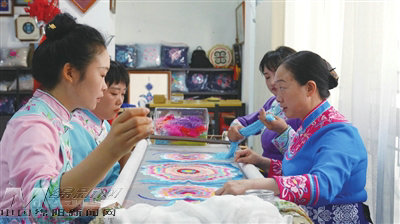 北川非遺傳習所里,繡娘們創(chuàng)作羌繡作品
