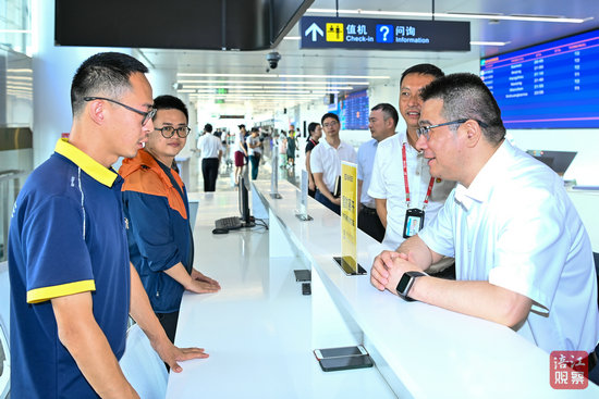 暑期迎來出行高峰,機(jī)場如何保障旅客平安順利出行,李云對此十分關(guān)心。走進(jìn)航站樓安檢站,李云察看特檢室、安檢服務(wù)臺(tái),了解旅客出行服務(wù)和特殊人群安檢服務(wù)工作。他強(qiáng)調(diào),要大力提升服務(wù)能力,聚焦旅客出行需求,在值機(jī)流程、行李服務(wù)、特殊關(guān)懷等方面推出更多暖心舉措,努力創(chuàng)造安全便捷暢通出行環(huán)境。今年省人代會(huì)期間,部分省人大代表就殘疾人過安檢存在不便等問題提出意見建議。李云在調(diào)研期間檢查了機(jī)場改進(jìn)殘疾人服務(wù)工作情況,強(qiáng)調(diào)要進(jìn)一步優(yōu)化無障礙乘機(jī)流程,加強(qiáng)機(jī)場員工的手語、盲文、假肢穿脫等技能培訓(xùn),定向提供輪椅接送、導(dǎo)盲協(xié)助等特色服務(wù),切實(shí)為殘疾人旅客提供更加安全、更加舒適的出行體驗(yàn)。