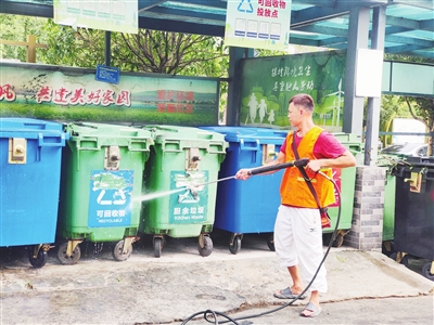 環(huán)衛(wèi)工人對垃圾桶進(jìn)行消殺