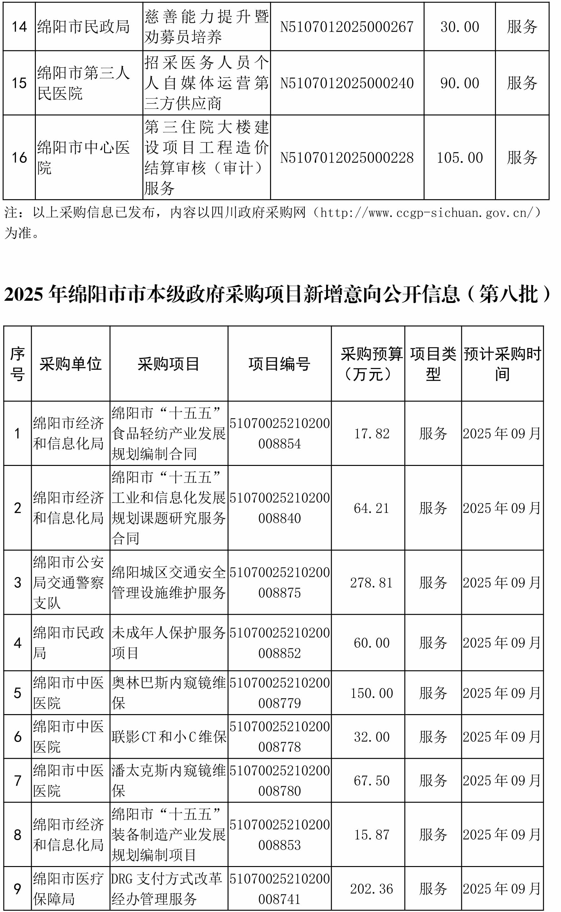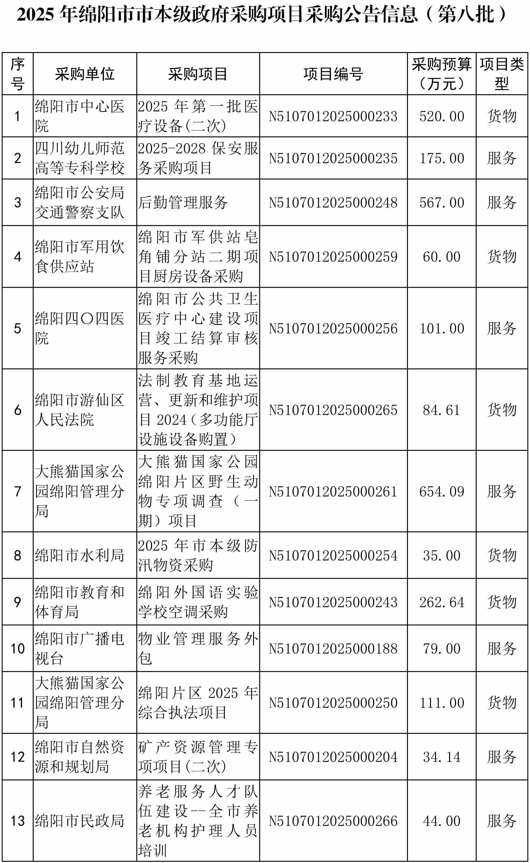 此批綿陽市市本級(jí)政府采購項(xiàng)目集中發(fā)布采購公告信息共計(jì)16個(gè)(于8月5日前已掛網(wǎng)),采購預(yù)算金額2952.48萬元,其中:貨物類項(xiàng)目6個(gè),金額1073.25萬元;服務(wù)類項(xiàng)目10個(gè),金額1879.23萬元。