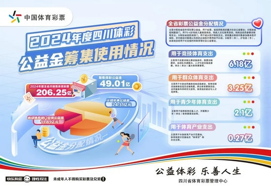 數(shù)據(jù)無(wú)言,卻最有力地詮釋著體彩公益的厚重分量。今年6月,四川省體育局發(fā)布了關(guān)于2024年度省級(jí)體育彩票公益金籌集使用情況的公告。公告指出,2024年度全省共銷售體育彩票206億元,籌集體彩公益金49.01億元,其中計(jì)提中央公益金24.31億元。