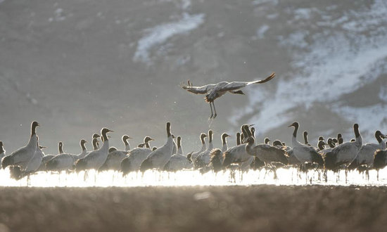 黑頸鶴主要棲息在高原海拔2500米至5000米的草甸、沼澤地帶,是世界上唯一生長(zhǎng)、繁殖在高原的鶴類,也是國(guó)家一級(jí)保護(hù)動(dòng)物,有“高原仙子”的美稱。每年3月中下旬,黑頸鶴向北方各繁殖地遷徙;10月,開始結(jié)群帶領(lǐng)幼鳥南遷至西藏林周等地越冬。