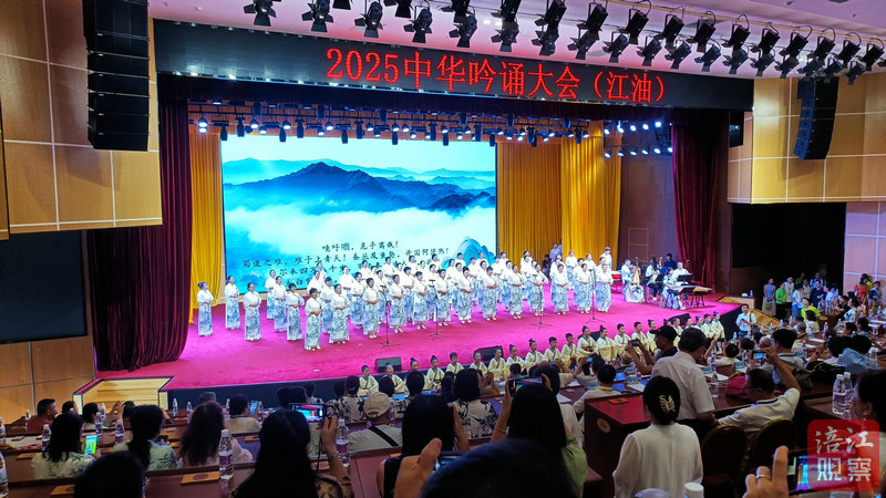 當(dāng)晚,江油大劇院座無虛席,“吟風(fēng)誦雅覓詩仙——李白詩歌中華吟誦展演”在這里掀起了2025中華吟誦大會的高潮。參會的吟誦專家學(xué)者、傳承人和愛好者輪番登臺,以風(fēng)格各異的吟誦技藝演繹李白系列經(jīng)典詩詞,為觀眾獻(xiàn)上了一臺有滋有味、高雅浪漫的吟誦盛宴。