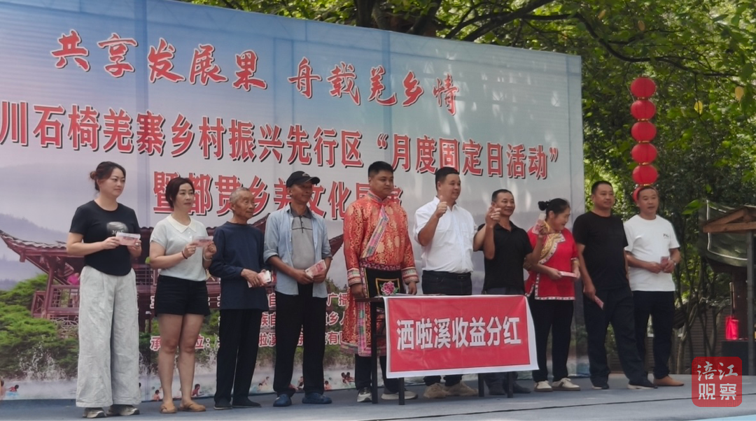 8月18日,綿陽北川石椅羌寨鄉(xiāng)村振興先行區(qū)“月度固定日活動”暨都貫鄉(xiāng)羌文化展演在灑啦溪風(fēng)情谷舉行,北川灑啦溪旅游開發(fā)有限公司向神龍灘合作社25戶成員發(fā)放7.6萬元分紅。