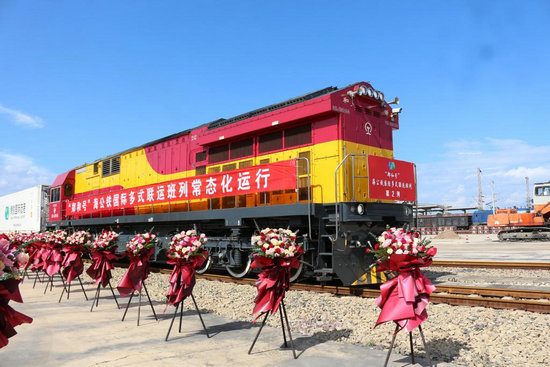 8月28日下午拍攝的“鄭和號”海公鐵國際多式聯(lián)運班列。新華社發(fā)