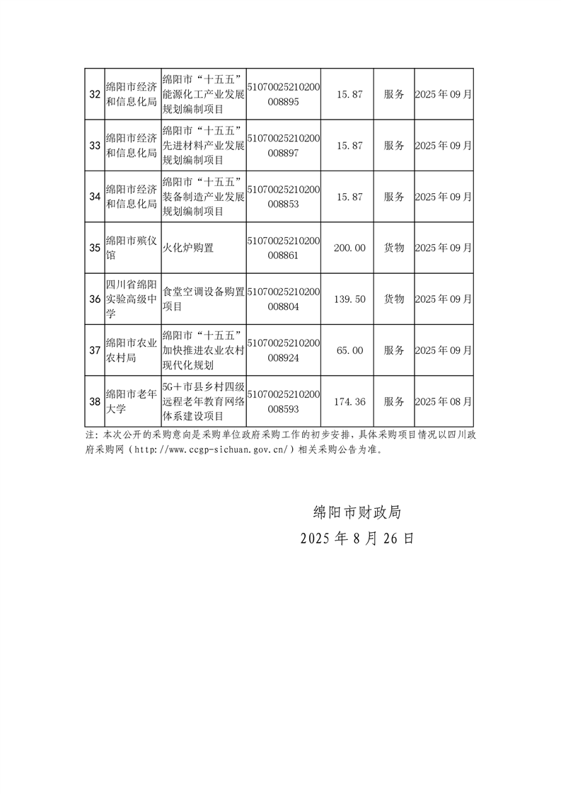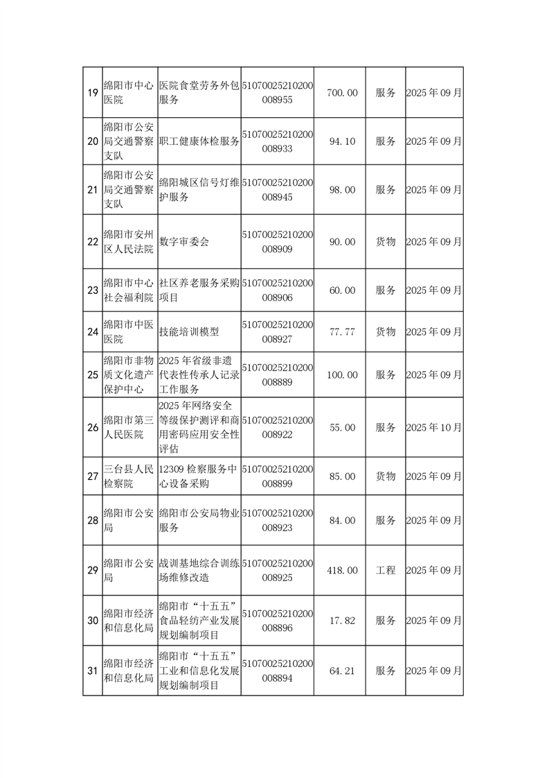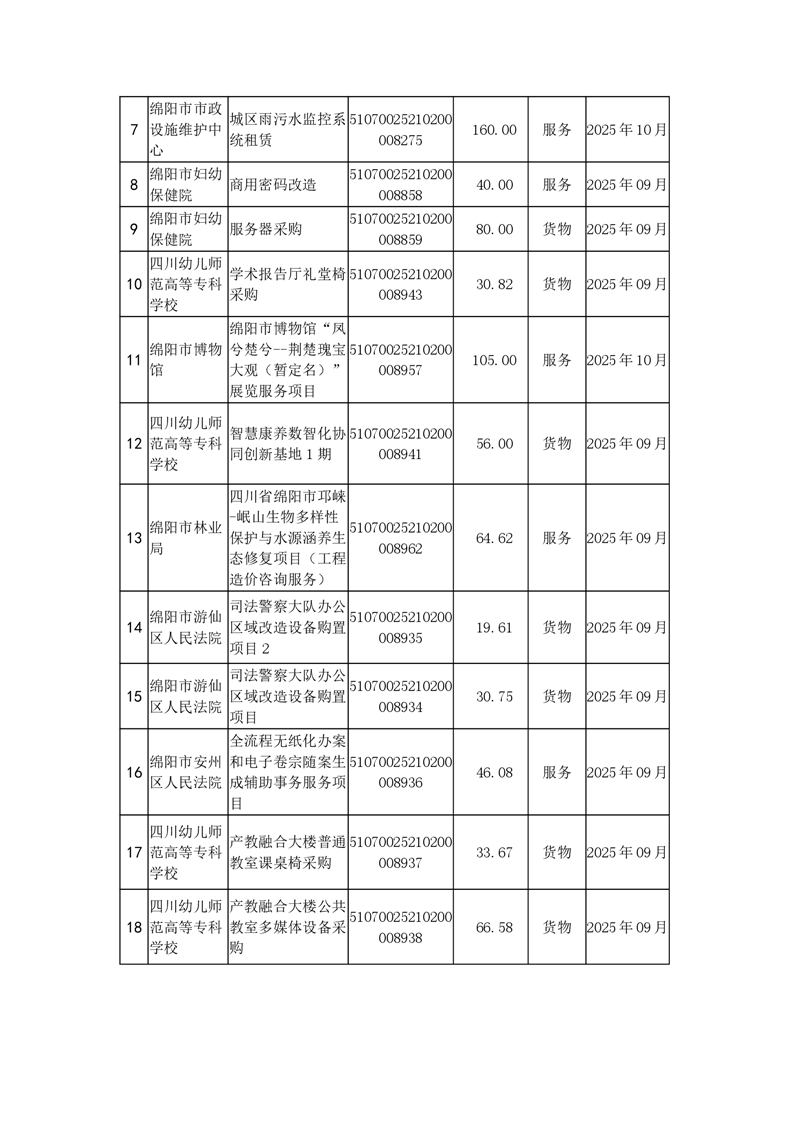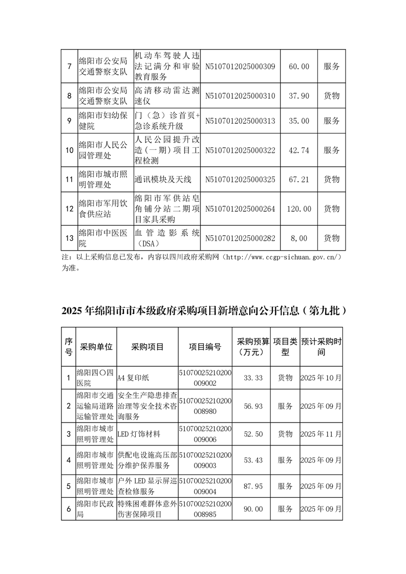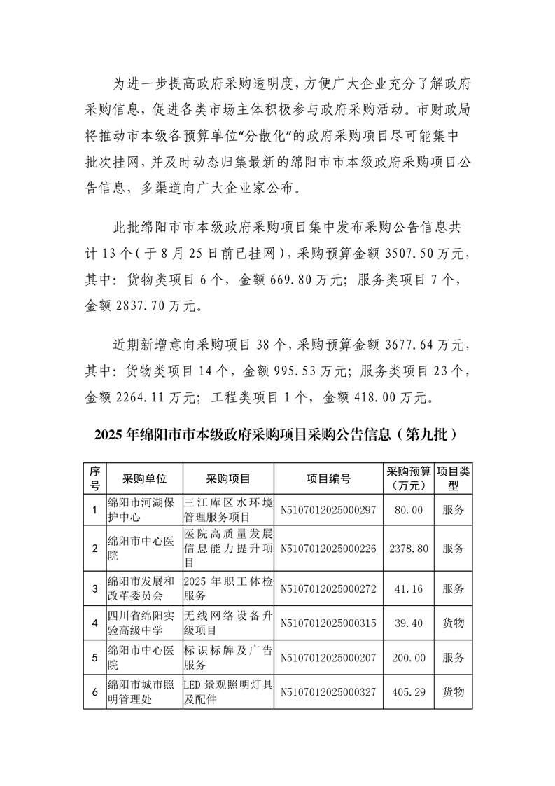 51個政府采購項目的“機會清單”出爐?。?025年第九批)綿陽市市本級政府采購項目信息動態(tài)(2025年第九波)