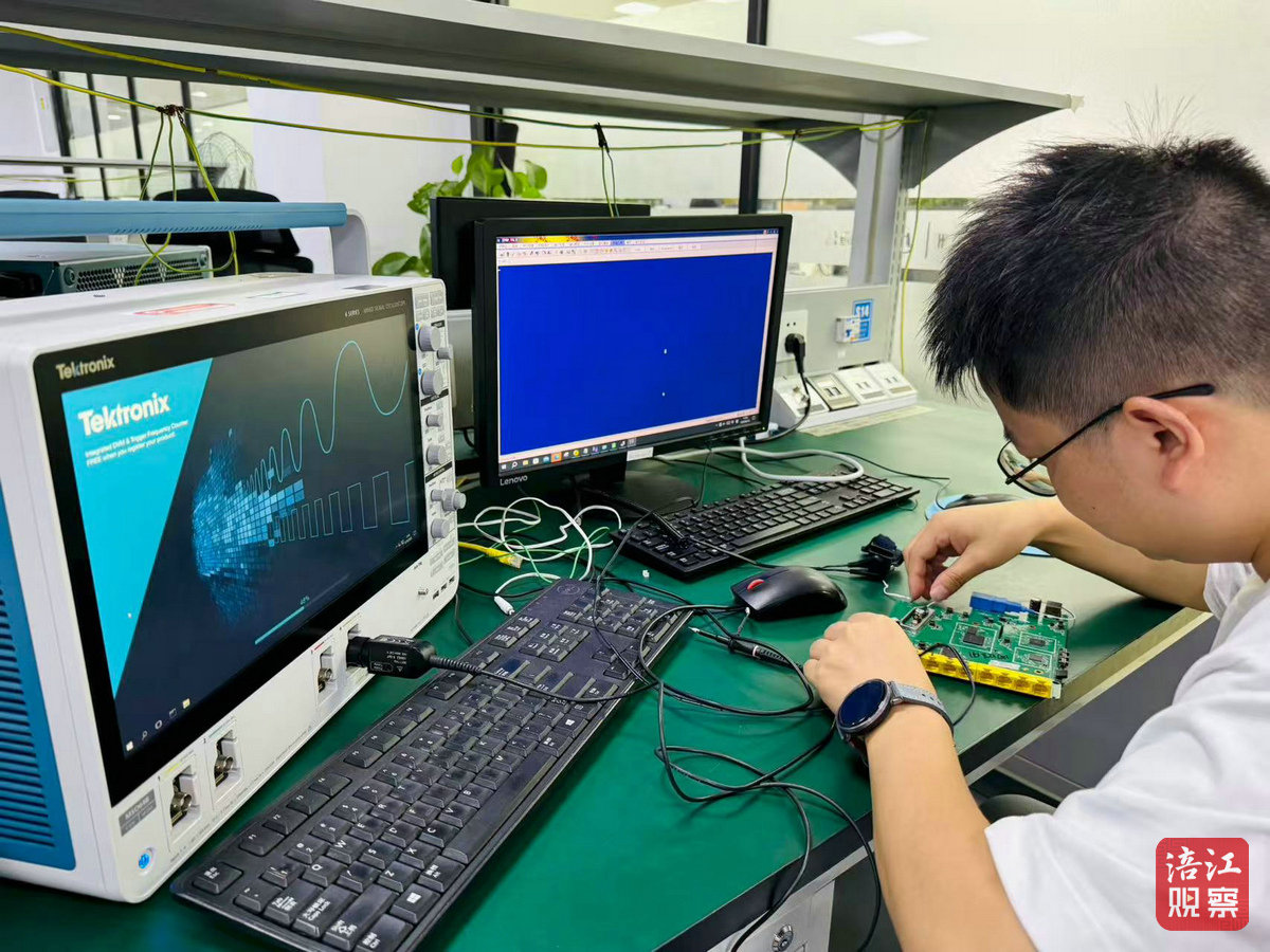 8月19日,記者走進四川省數(shù)據(jù)通信終端中試研發(fā)平臺實驗室,若干設備的指示燈明滅閃爍,一名技術人員正俯身操作臺,對一款光網(wǎng)絡終端設備反復進行開關機測試。