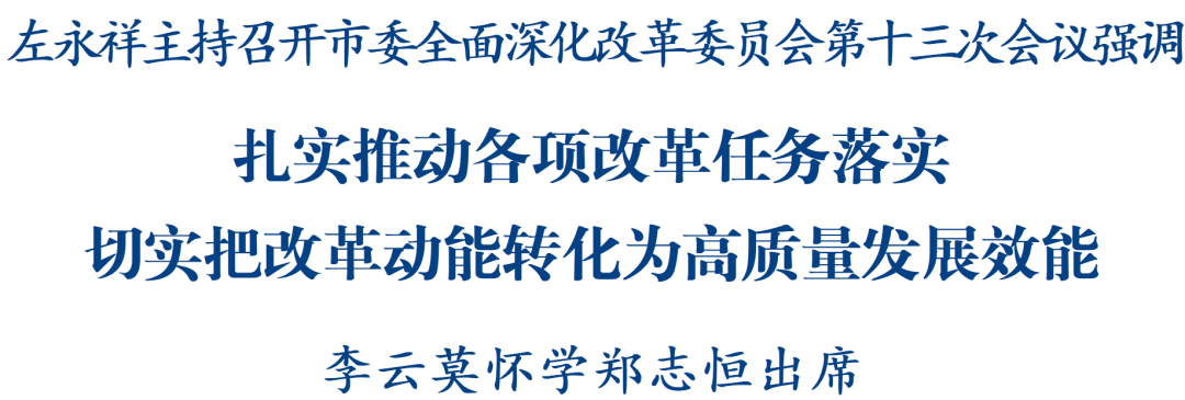 9月4日,市委全面深化改革委員會(huì)第十三次會(huì)議召開,省委常委、市委書記、市委全面深化改革委員會(huì)主任左永祥主持會(huì)議并講話。他強(qiáng)調(diào),要深入學(xué)習(xí)貫徹習(xí)近平總書記關(guān)于全面深化改革的重要論述,全面落實(shí)黨中央和省委決策部署,扎實(shí)推動(dòng)各項(xiàng)改革任務(wù)落實(shí),切實(shí)把改革動(dòng)能轉(zhuǎn)化為高質(zhì)量發(fā)展效能。