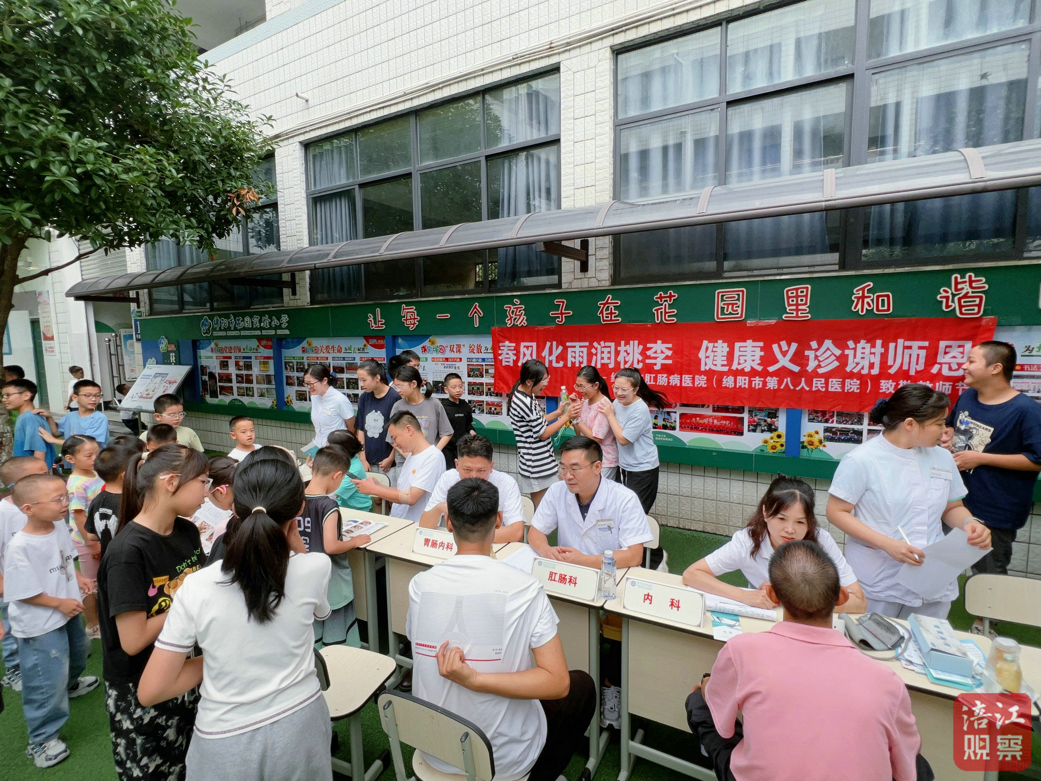 當(dāng)日上午,綿陽市花園實(shí)驗(yàn)小學(xué)熱鬧非凡,綿陽市第八人民醫(yī)院組織針灸科、肛腸科、胃腸內(nèi)科、內(nèi)科等多科室資深專家走進(jìn)校園,為老師們開展義診和咨詢,以實(shí)際行動(dòng)向教師們送關(guān)懷。