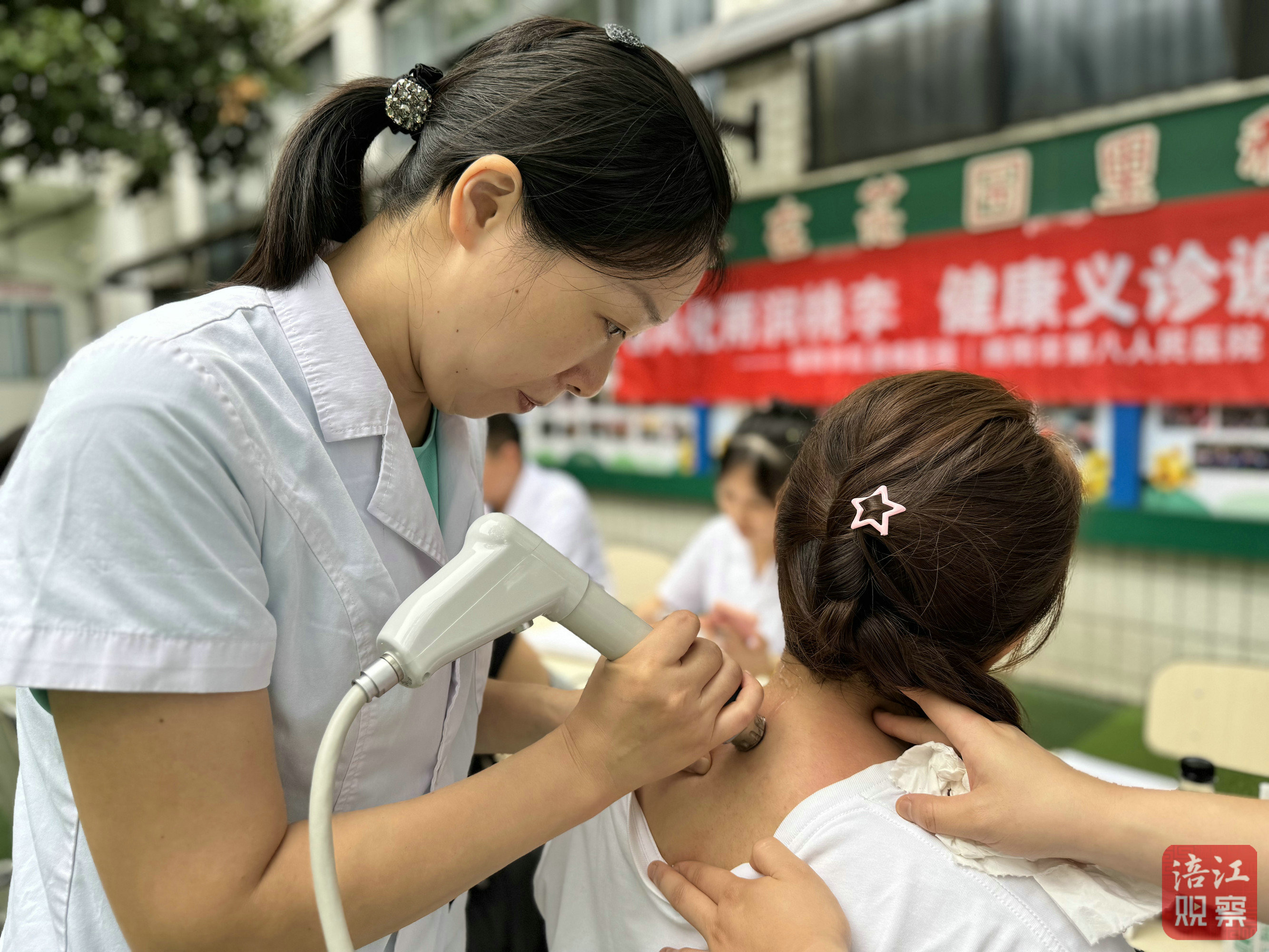 “長期上課,咽喉不適是常事,除了吃緩解咽喉疼痛的藥還可以怎么調(diào)理?”“經(jīng)常批改作業(yè),時(shí)間長了不僅容易腰背酸痛,肩頸還僵硬,很難受......”面對(duì)前來咨詢的教師,義診醫(yī)生楊云耐心地提供專業(yè)意見,還利用“獨(dú)龍針”“浮針”等特色針灸技術(shù),配合“沖擊波”治療儀深入舒緩老師們的病痛,引來眾多教師參與體驗(yàn)。