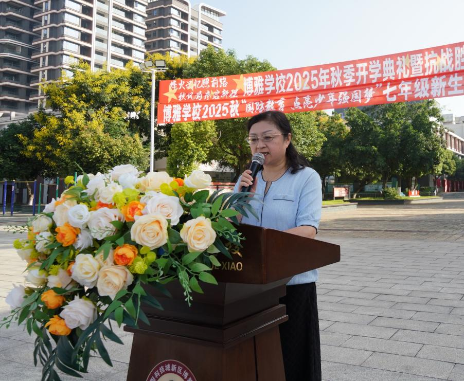 博雅學(xué)校校長唐慧在新學(xué)期致辭中,對同學(xué)們提出了殷切的期望。她希望同學(xué)們從楊靖宇等先輩身上明白愛國真諦,努力學(xué)習(xí),成長為有擔(dān)當(dāng)?shù)臅r代新人。