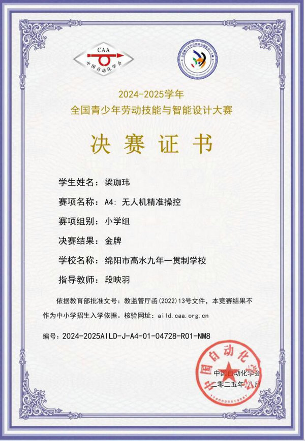 綿陽新聞網(wǎng)訊 近日,在2024—2025 學(xué)年全國青少年勞動技能與智能設(shè)計大賽”中,綿陽市高水九年一貫制學(xué)校(城北七中)小學(xué)部梁珈瑋同學(xué)憑借扎實的勞動技能知識、出色的智能設(shè)計創(chuàng)意以及沉穩(wěn)的現(xiàn)場發(fā)揮,一路過關(guān)斬將,最終在眾多優(yōu)秀選手中脫穎而出,斬獲金牌。這一優(yōu)異成績的取得,不僅是梁珈瑋同學(xué)個人的榮譽(yù),更是該??萍冀逃晒挠辛σ娮C。