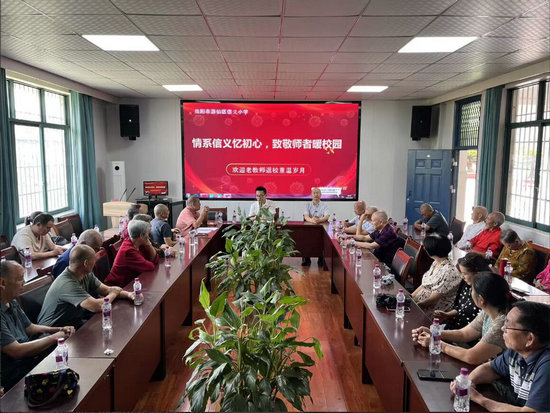 活動當(dāng)日,老教師們或相互攙扶、或由家屬陪同,分批踏入熟悉的校園。久別重逢的他們親切交談,憶共事時光、話校園變遷,溫馨氛圍滿溢。隨后,全體人員齊聚會議室,開啟座談交流。