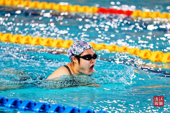 鄭曦與隊友默契配合、奮勇沖刺,最終斬獲蛙泳混合4×50米接力(行業(yè)組)季軍。