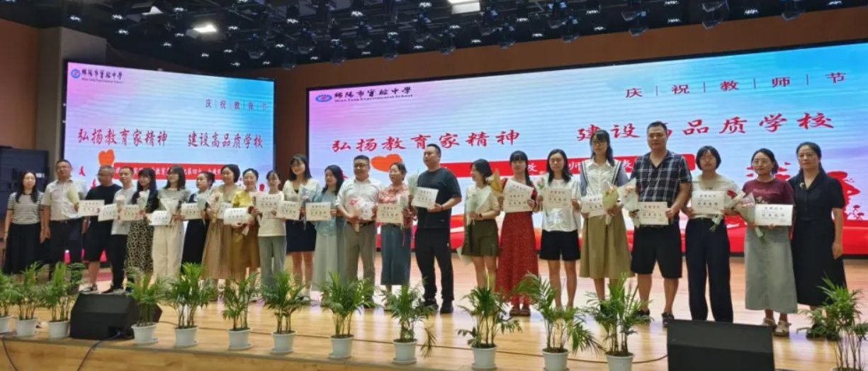 綿陽新聞網(wǎng)訊 9月10日下午,綿陽市實(shí)驗(yàn)中學(xué)(綿陽七中)教育集團(tuán)舉行了以"弘揚(yáng)教育家精神 建設(shè)高品質(zhì)學(xué)校"為主題的第41個(gè)教師節(jié)慶祝大會(huì)。大會(huì)由李星諾、周磊兩位老師主持,共有來自南河、城南、城北和石塘四校區(qū)的200余名教職工參加。