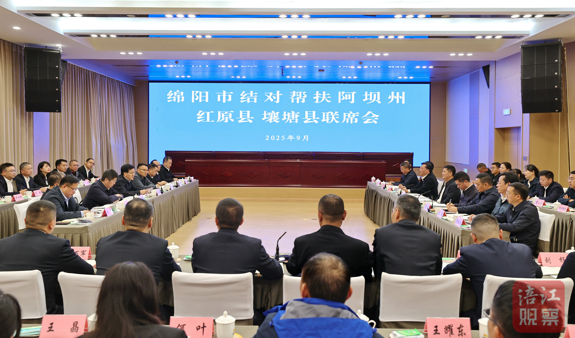 會(huì)上,左永祥對(duì)近年來(lái)阿壩州經(jīng)濟(jì)社會(huì)發(fā)展取得的成就表示祝賀。他說(shuō),開(kāi)展東西部協(xié)作和定點(diǎn)幫扶,是黨中央著眼推動(dòng)區(qū)域協(xié)調(diào)發(fā)展、促進(jìn)共同富裕作出的重大決策。對(duì)紅原、壤塘開(kāi)展結(jié)對(duì)幫扶,是省委、省政府賦予綿陽(yáng)的一項(xiàng)光榮任務(wù)。我們將深入貫徹落實(shí)黨中央、國(guó)務(wù)院和省委、省政府決策部署,在精準(zhǔn)幫扶上持續(xù)發(fā)力,進(jìn)一步提升幫扶工作實(shí)效,為兩縣高質(zhì)量發(fā)展注入新活力。在振興產(chǎn)業(yè)上,幫助因地制宜發(fā)展文化旅游、農(nóng)牧業(yè)等特色優(yōu)勢(shì)產(chǎn)業(yè),將民族文化優(yōu)勢(shì)、生態(tài)環(huán)境優(yōu)勢(shì)、自然資源優(yōu)勢(shì)轉(zhuǎn)化為經(jīng)濟(jì)發(fā)展優(yōu)勢(shì)。在改善民生上,接續(xù)謀劃實(shí)施一批教育、醫(yī)療、交通等惠民生項(xiàng)目,進(jìn)一步完善公路、水利、電力、通信等基礎(chǔ)設(shè)施,助力兩縣不斷提升公共服務(wù)水平、改善生產(chǎn)生活環(huán)境。在培育人才上,加強(qiáng)干部人才雙向交流,著力拓展紅原、壤塘人才赴綿陽(yáng)學(xué)習(xí)通道,努力為兩縣培養(yǎng)一支“帶不走”的干部人才隊(duì)伍。在鞏固團(tuán)結(jié)上,共同宣傳好、運(yùn)用好黨的民族宗教政策,不斷推進(jìn)中華民族共同體建設(shè),持續(xù)夯實(shí)兩縣和諧穩(wěn)定、長(zhǎng)治久安的群眾基礎(chǔ)。綿陽(yáng)和阿壩兩地資源稟賦、產(chǎn)業(yè)結(jié)構(gòu)、市場(chǎng)需求互補(bǔ)性很強(qiáng),具備良好的合作條件和廣泛的合作基礎(chǔ)。希望雙方在共促產(chǎn)業(yè)創(chuàng)新協(xié)同、共推文旅融合發(fā)展、共護(hù)綠色生態(tài)底色上持續(xù)發(fā)力,拓展合作領(lǐng)域、擴(kuò)大合作成果,攜手推動(dòng)綿阿深化合作協(xié)同發(fā)展再上新臺(tái)階。