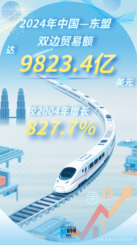 從2004年的1058.83億美元,到2024年的9823.4億美元,中國與東盟雙邊貿(mào)易額增幅為827.7%,經(jīng)貿(mào)合作持續(xù)深化。其中,2010年、2021年增速尤為突出,分別為37.5%和28.1%,展現(xiàn)出強(qiáng)勁的合作韌性。