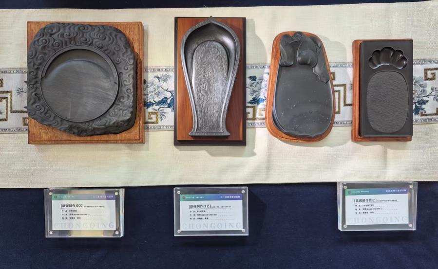 安徽展區(qū)歙硯系列作品。新華社記者 肖瑤 攝