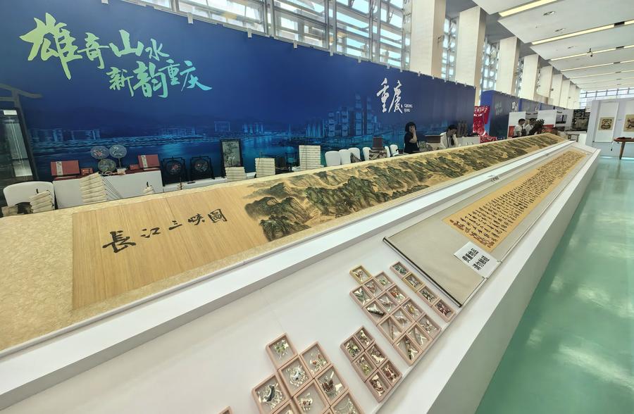在同日開啟的長江流域非遺精品展上,13.98米長的梁平竹簾作品《長江三峽圖》展卷長鋪,彭水苗繡作品《砥柱銘》書法氣韻生動(dòng),苗族銀飾亮眼奪目,四川蜀錦細(xì)膩逼真……展會(huì)還邀請(qǐng)了各地傳承人,現(xiàn)場展示非遺技藝,讓地圖上的非遺印記落地可感。