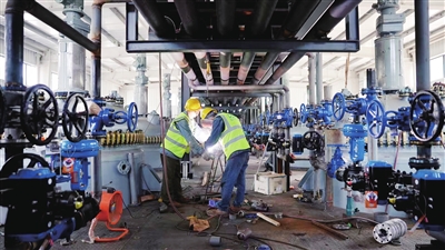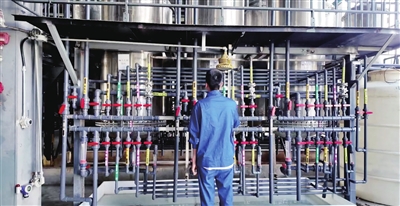 迪澳藥業(yè)工人正在查看設(shè)備運轉(zhuǎn)情況