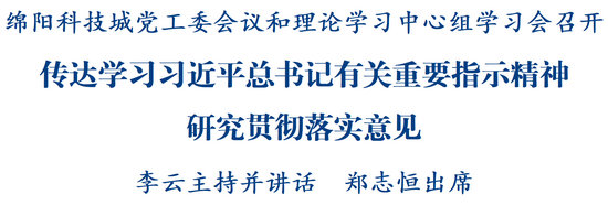 綿陽新聞網(wǎng)訊 近日,綿陽科技城黨工委會議和理論學習中心組學習會召開,傳達學習習近平總書記有關(guān)重要指示精神,以及中央和省市有關(guān)會議精神,圍繞《習近平談治國理政》第五卷開展個人自學和集體研討。市委副書記、市長、科技城黨工委書記李云主持會議并講話。