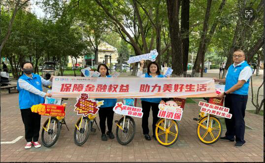 天津分公司的騎行宣傳小隊(duì)從海光寺商圈出發(fā),車(chē)筐里擺著太平吉象和“消保團(tuán)子”玩偶,懸掛著醒目標(biāo)語(yǔ),一路騎行至街邊公園、公交站、學(xué)校等人流密集區(qū),向市民發(fā)放折頁(yè)、講解知識(shí)。“共享單車(chē)+金融宣傳”,既環(huán)保又親民,真正讓知識(shí)“騎”進(jìn)百姓心里。