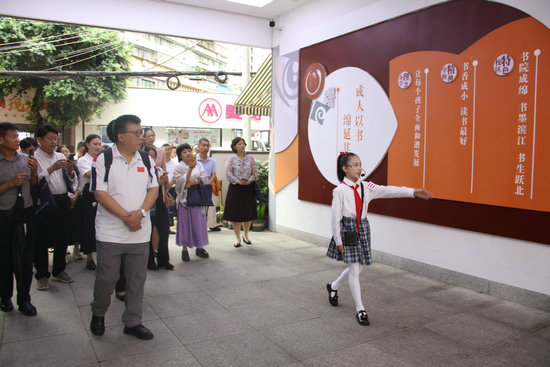 綿陽新聞網(wǎng)訊 9月18日上午,三亞市中小學(xué)骨干校長50余人及西南大學(xué)、綿陽市教科所相關(guān)專家領(lǐng)導(dǎo)共計60余人組成的研修班一行到訪成綿路小學(xué)教育集團成綿校區(qū),開展了以“文脈綿延展特色 書香致遠譜新篇”為主題的參觀交流活動,共赴一場書香浸潤的教育對話。
