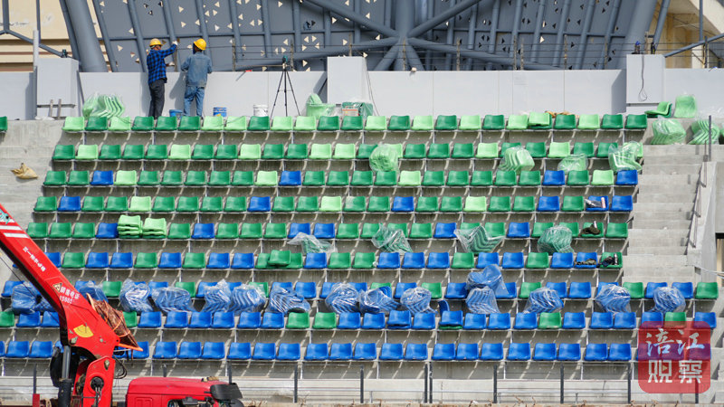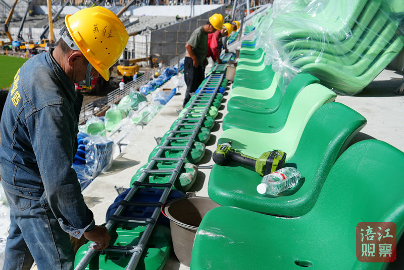 看臺區(qū)域是當前施工的核心焦點。記者在現(xiàn)場看到,數(shù)十名工人分工協(xié)作、配合默契,正有條不紊地進行座椅安裝作業(yè)。據(jù)項目負責人介紹,改造后的體育場看臺將設(shè)置上萬個座位,結(jié)合三臺地域文化與生態(tài)特色,座椅選用青藍、深綠、淺綠三色漸變排布——下層青藍呼應涪江岸畔的連綿遠山,中層深綠象征流淌的涪江江面,上層淺綠則如近岸淺灘,通過色彩層次勾勒出“山水相依”的自然意象,既具視覺美感,又蘊含本土韻味。
