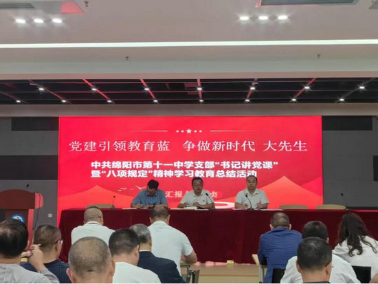 綿陽(yáng)新聞網(wǎng)訊 為了深入貫徹黨的教育方針,推動(dòng)教育事業(yè)高質(zhì)量發(fā)展,9月18日,中共綿陽(yáng)市第十一中學(xué)黨支部開(kāi)展“書記講黨課”暨“八項(xiàng)規(guī)定”精神學(xué)習(xí)教育總結(jié)活動(dòng)。黨支部全體黨員教師參加會(huì)議。