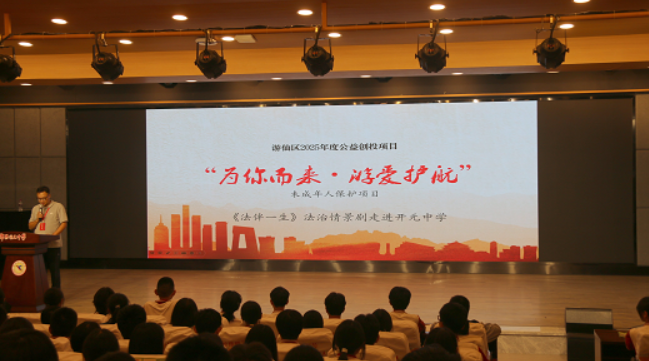 綿陽新聞網(wǎng)訊 為了切實防治校園欺凌,筑牢校園安全防線,引導(dǎo)學(xué)生認(rèn)清校園欺凌的危害,增強自我保護的意識和能力。2025年9月24日下午,游仙區(qū)“熊貓未士•燈塔”團隊走進綿陽開元中學(xué),在和美樓六樓學(xué)術(shù)廳開展了以“為你而來 游愛護航”為主題的《法伴一生》法治情景劇展演活動。初中部和高中部部分班級師生參加,活動由政教處主任廖建軍主持。