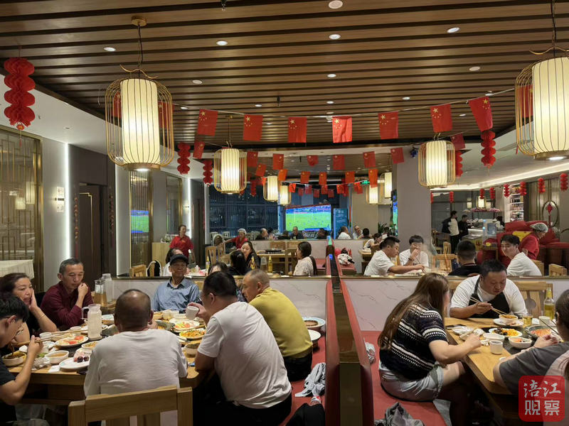 正在點(diǎn)菜的李先生說:“我們原計(jì)劃是去別家吃飯,路過時(shí)看到能邊看球邊吃火鍋,立馬被吸引了。這種‘觀賽+餐飲’的模式非常新穎,氛圍感十足,感覺周圍坐的都是同道球迷!”比賽尚未正式開始,熱烈的氛圍已然升溫。