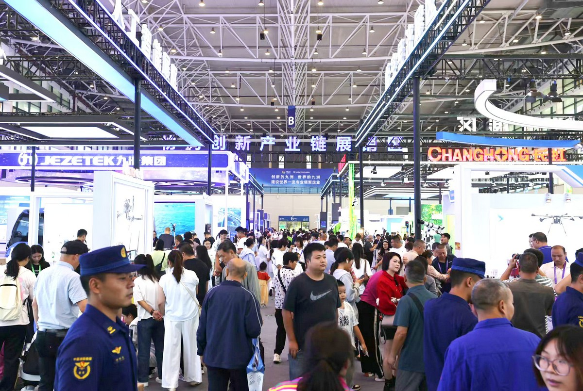 執(zhí)行中國(guó)首次火星探測(cè)任務(wù)的“天問一號(hào)”、FH-95中遠(yuǎn)程多用途無人機(jī)系統(tǒng)、北斗組網(wǎng)模型……這些“國(guó)之重器”都在這里亮相。此外,長(zhǎng)虹控股集團(tuán)帶來的“天幕”“天盾”反無人機(jī)系統(tǒng),能實(shí)現(xiàn)對(duì)防護(hù)空域的縱深監(jiān)控和立體防護(hù),科技感拉滿。
