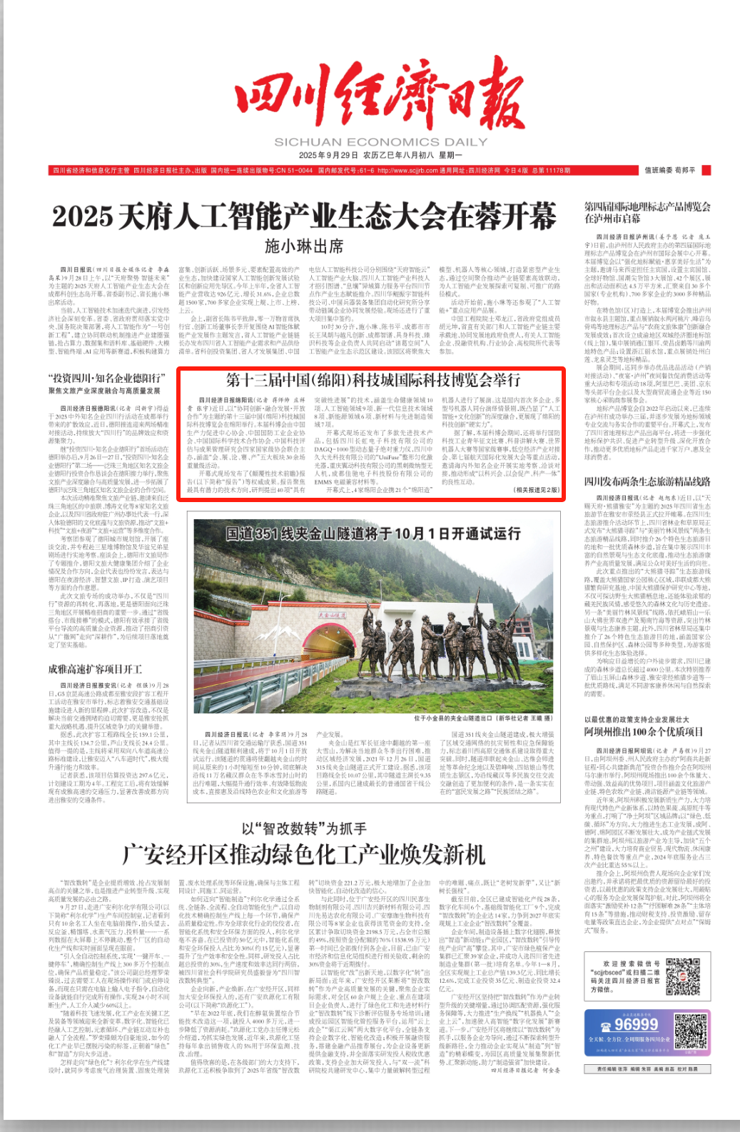 第十三屆中國(綿陽)科技城國際科技博覽會正如火如荼進行。9月29日,國內(nèi)多家媒體紛紛對科博會進行集中報道,其中《科技日報》要聞版 、《西安日報》要聞版、《四川經(jīng)濟日報》頭版共同聚焦這場科技盛宴。