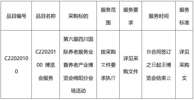 二、項(xiàng)目名稱:第六屆四川國(guó)際養(yǎng)老服務(wù)業(yè)暨養(yǎng)老產(chǎn)業(yè)博覽會(huì)綿陽(yáng)分會(huì)場(chǎng)活動(dòng)