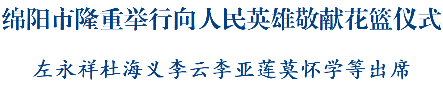 市委、市人大常委會(huì)、市政府、市政協(xié)領(lǐng)導(dǎo),市中級(jí)法院院長、市檢察院檢察長,駐綿部隊(duì)有關(guān)領(lǐng)導(dǎo),市直部門、民主黨派、工商聯(lián)、無黨派人士及科學(xué)城辦事處代表,烈士遺屬、老戰(zhàn)士和退役軍人代表,師生、企業(yè)職工、消防員和駐綿部隊(duì)官兵代表,涪城區(qū)黨、政、軍和人民團(tuán)體負(fù)責(zé)人及各界群眾代表等參加。