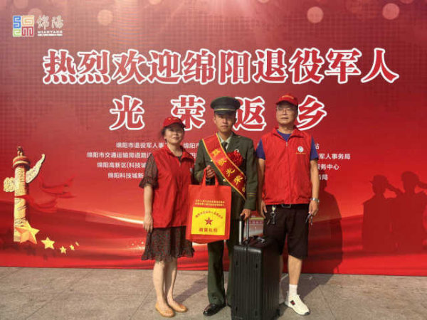 9月11日,在綿陽火車站站前廣場,幾位“老兵”走出出站口,立刻就有退役軍人服務中心的工作人員迎上去,為其佩戴綬帶,獻上紅花,并發(fā)放“兩卡一手冊”等政策禮包,熱情告知返鄉(xiāng)報到流程及相關政策。 [